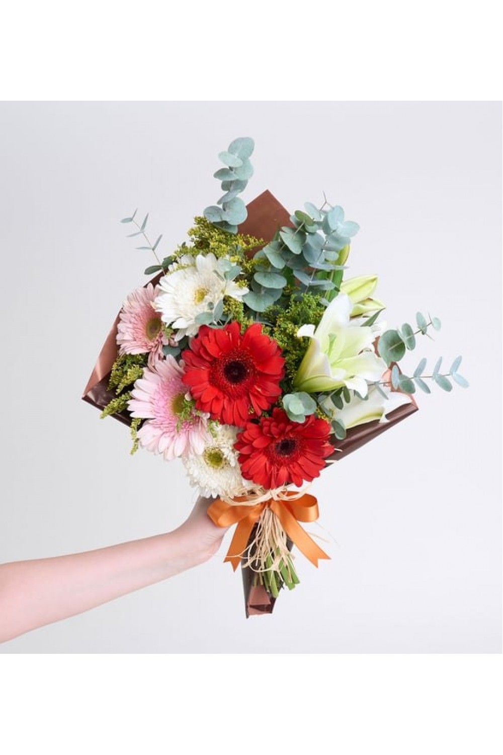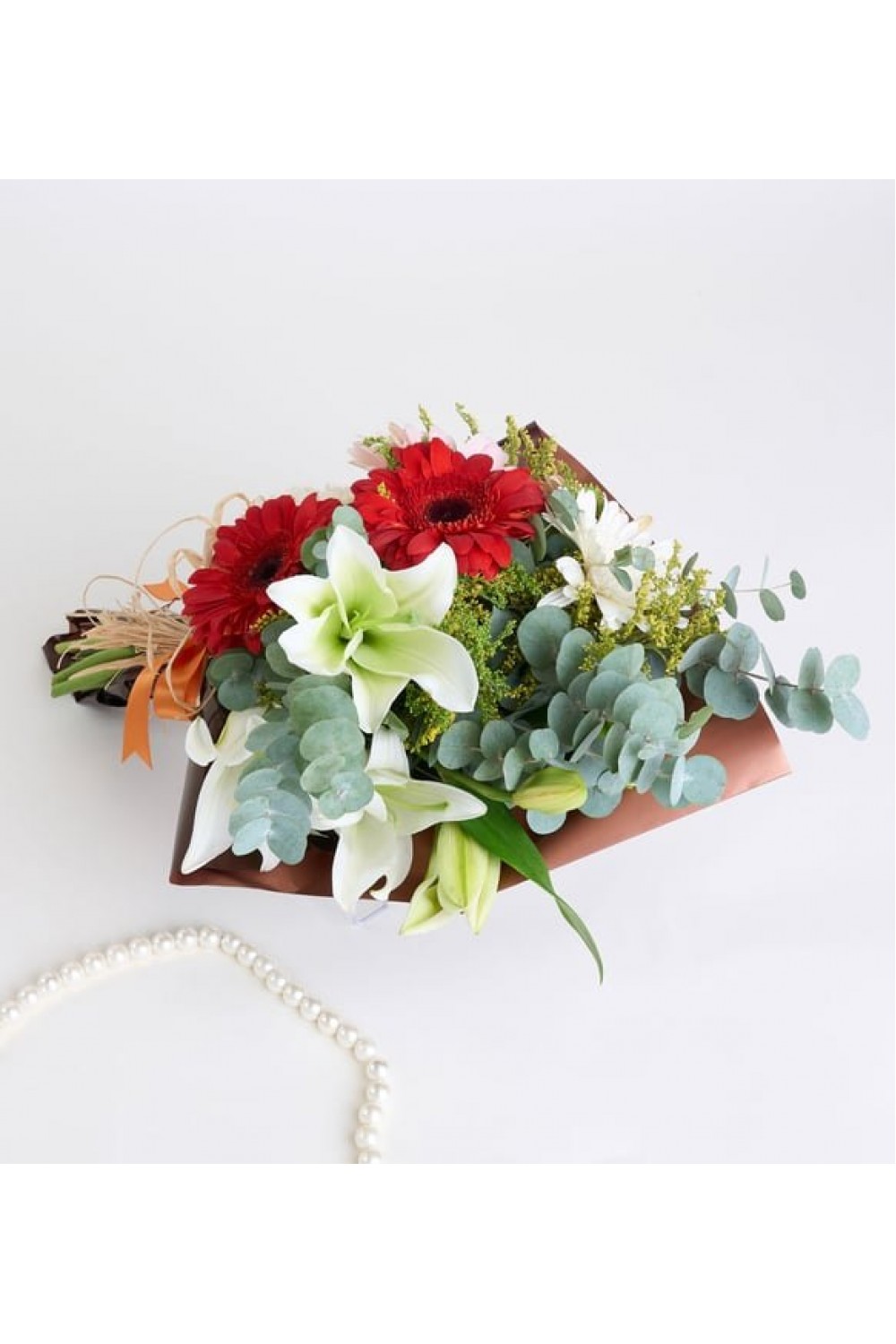 - Gerbera-Kırmızı : 2 AdetGerbera-Pembe : 2 AdetGerbera-Beyaz : 2 AdetBeyaz Lilyum : 4 Adet