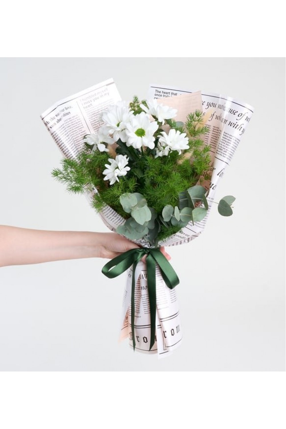 Ürün İsmi: Pembe Gazete Kağıdı Bukette Beyaz Papatyalar