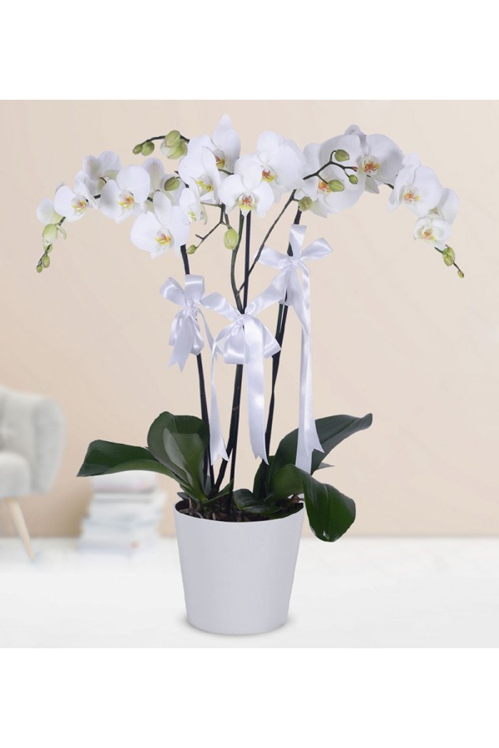 / Saksıda 3 Beyaz Orkide